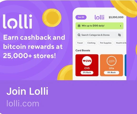 Earn free rewards at 25,000+ top stores. Get up to 30% back in cash or bitcoin with the free Lolli browser extension & mobile app.